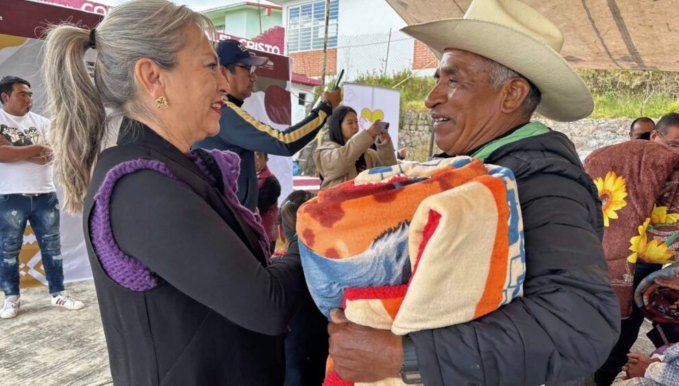 La atención a personas adultas mayores se materializó a través del programa “Café con Causa”, mediante la entrega de cobijas a habitantes de la comunidad de San Juan el Cristo, en el municipio de Jocotitlán, priorizando el abrigo y el acompañamiento durante la temporada invernal.
