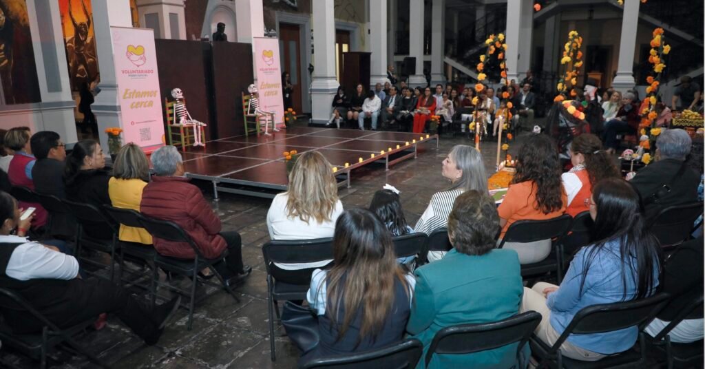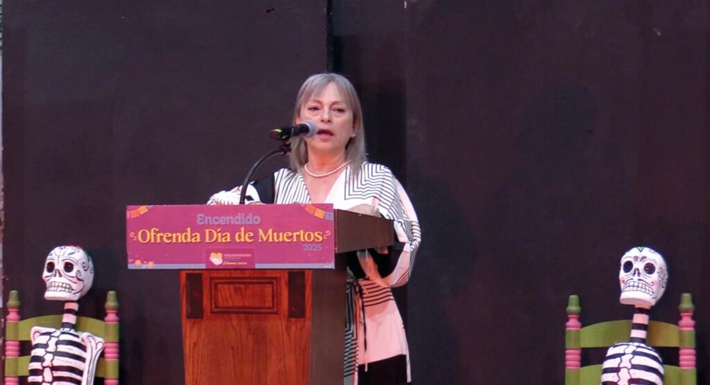 Alvis Gorostieta Uribe, Presidenta Honoraria del Voluntariado -quien encabezó al talentoso equipo de servidoras y servidores judiciales responsables de cada instalación- agradeció las manos voluntarias que hicieron posible este monumental altar que honra la memoria de quienes ya no están en este plano.