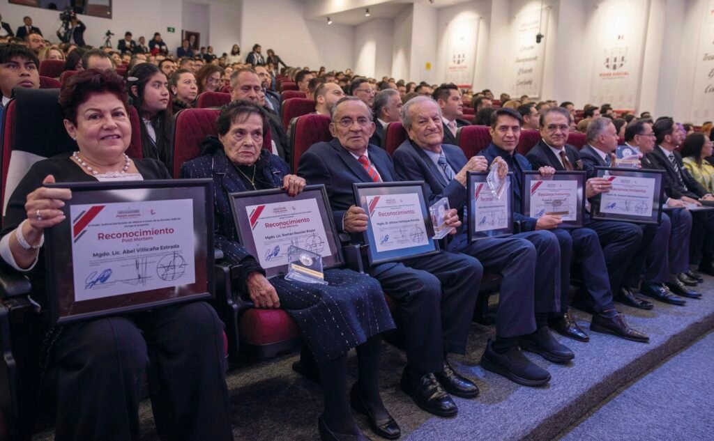 Además, se rindió homenaje a la memoria del Magistrado Luis Miranda Cardoso, primer director de la Escuela en 1986. Recibieron reconocimiento, en representación del Magistrado Abel Villicaña Estrada, su hija Norma Rosalba Villicaña, y del Magistrado Román Rosales Reyes, su esposa Josefina Becerril Velázquez.
