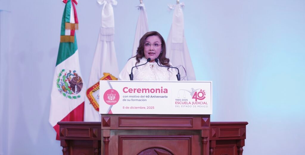 El 8 de diciembre, la Escuela Judicial del Estado de México celebró cuatro décadas de trayectoria como institución clave en la formación y profesionalización de quienes imparten justicia en la entidad. En el Aula Magna “Mgdo. Lic. Gustavo A. Barrera Graf”, se llevó a cabo la ceremonia conmemorativa por los 40 años de la EJEM, consolidada como un referente académico de vanguardia en la capacitación de juristas, servidoras y servidores judiciales de alto nivel.