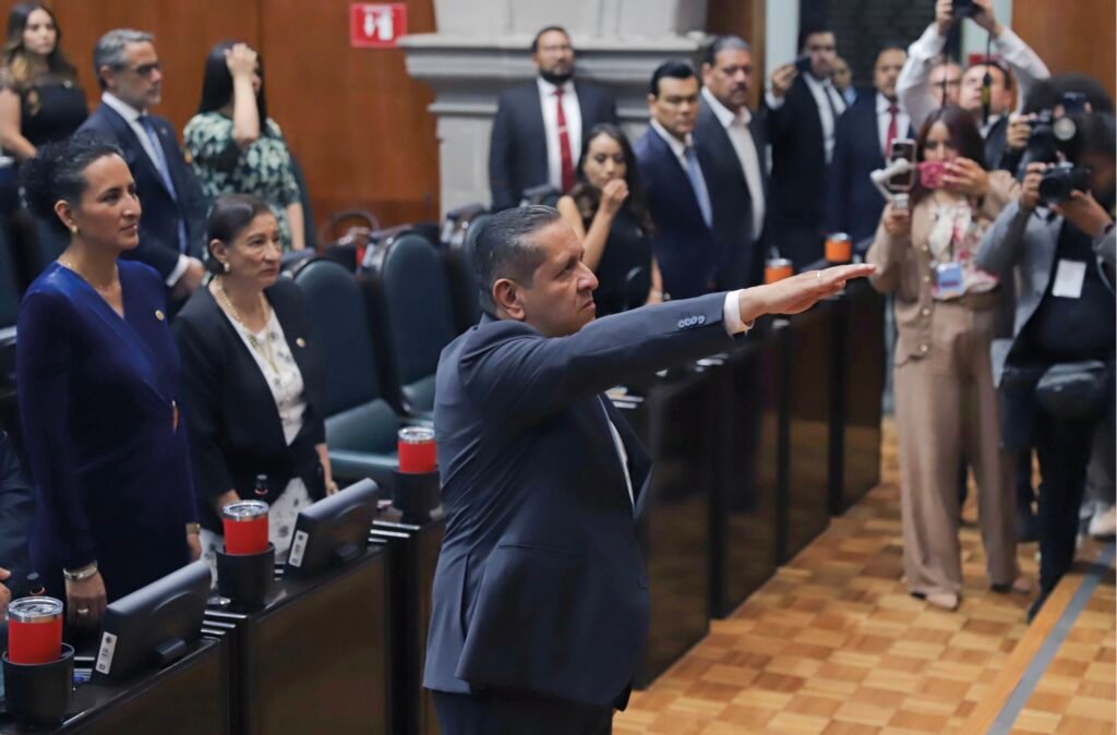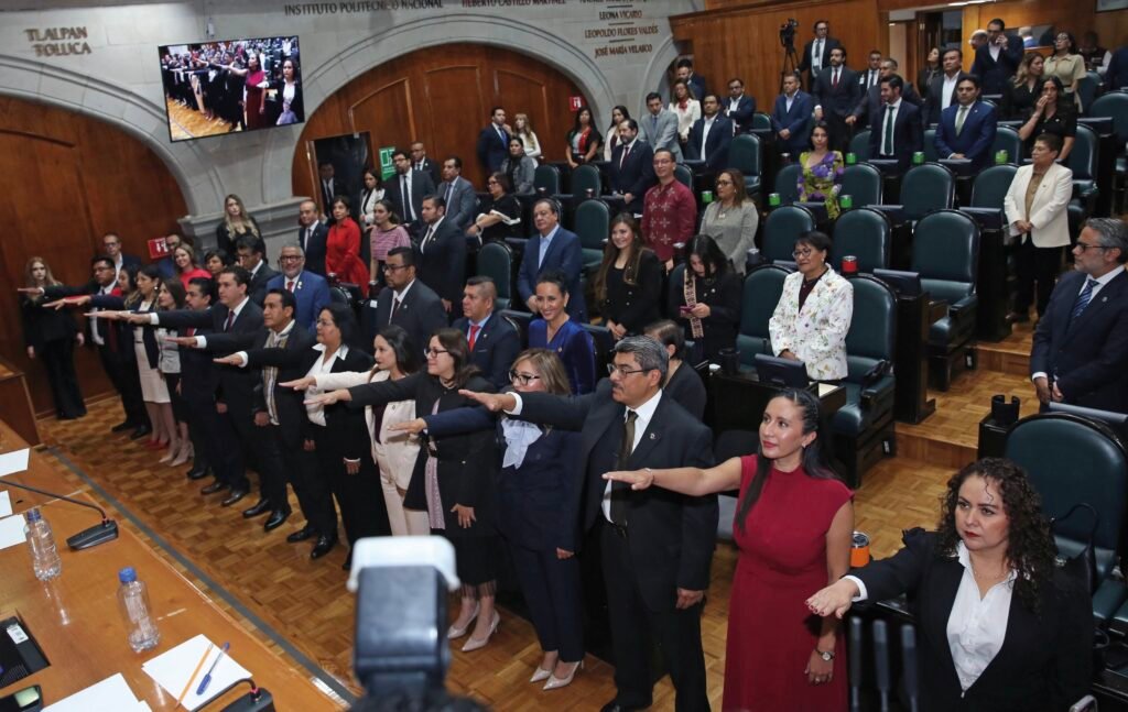 La histórica jornada del 5 de septiembre inició en el Congreso mexiquense, donde también asumieron funciones 30 magistradas y magistrados, 55 juezas y jueces electos por voto popular y las cinco personas integrantes del Tribunal de Disciplina Judicial, en presencia de la Gobernadora Delfina Gómez Álvarez. Macedo García resaltó que, por primera vez, la Presidencia del Tribunal rinde protesta ante el Poder Legislativo, hecho que simboliza la transformación hacia una institución con origen y carácter popular.